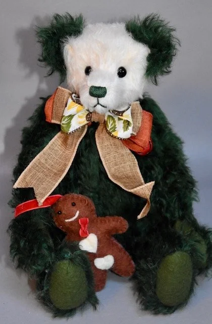 15” This hybrid is a cross between a wild cat and a domestic cat. He has 6 joints, hand sewn leather paw pads and is completely wired and moveable including his tail. He is made from a wonderful soft faux fur and has hand painted glass eyes inset in a needle felted face. Airbrushing details give him a life like appearance.